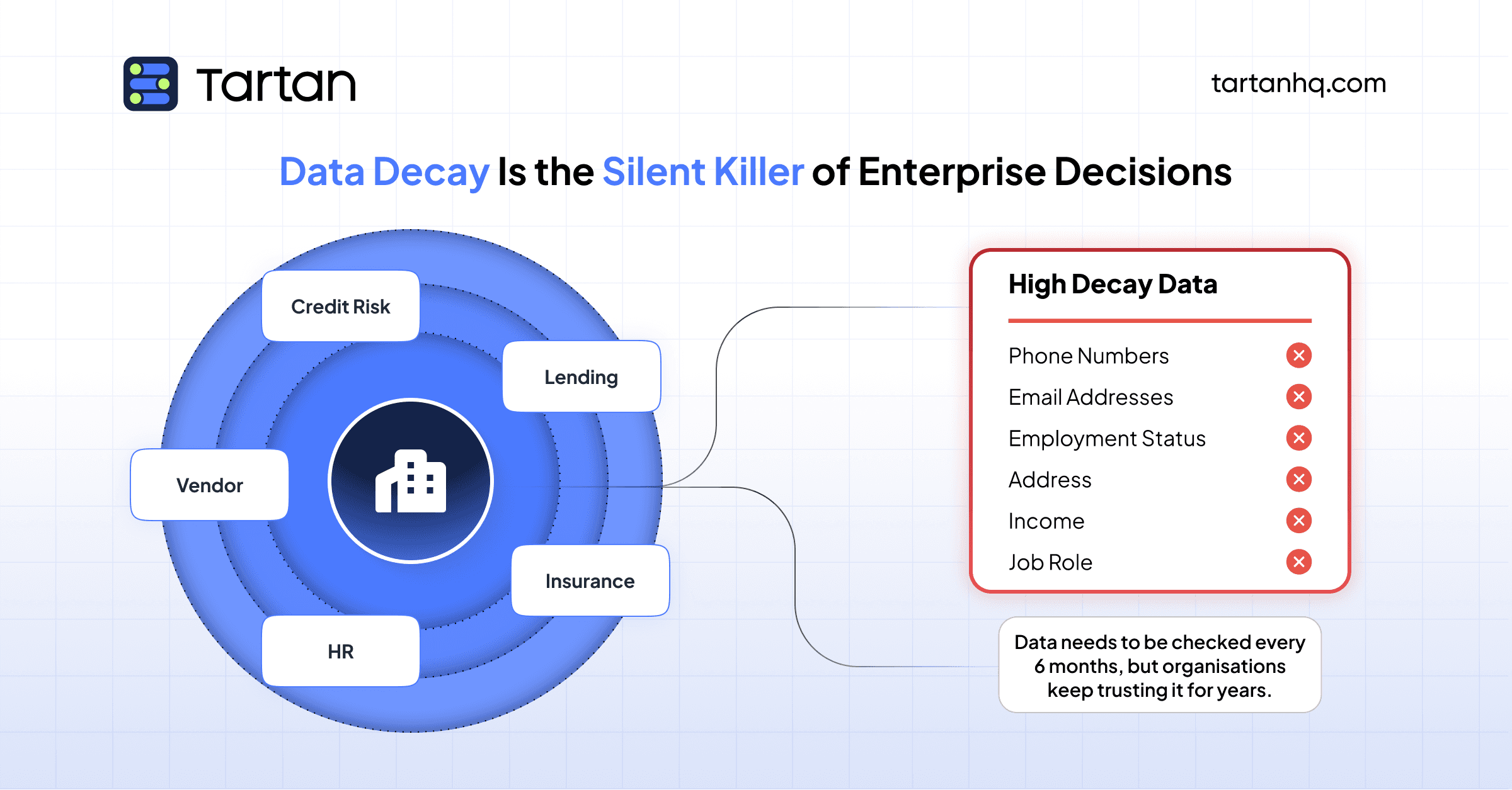 Data decay isn't a problem that lives in one function. It runs across the enterprise wherever decisions depend on information about people, organisations, and their current circumstances.