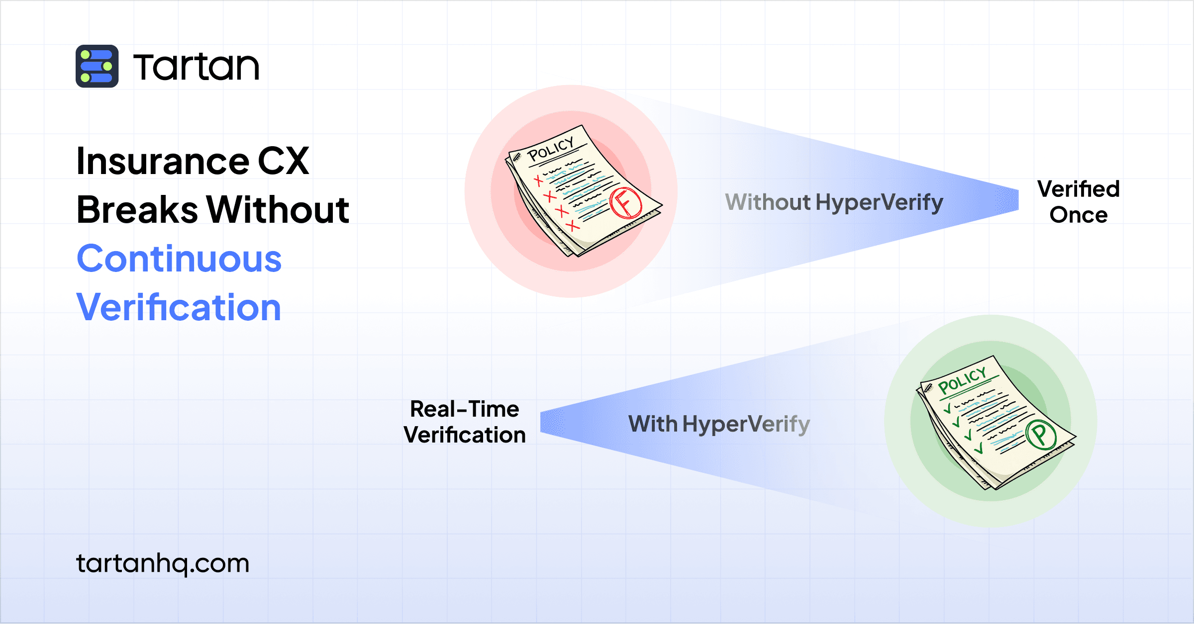 Insurance CX doesn't suffer at issuance. It suffers at servicing and claims, in the quiet places where verification was never designed to reach. HyperVerify by Tartan is built to reach them.