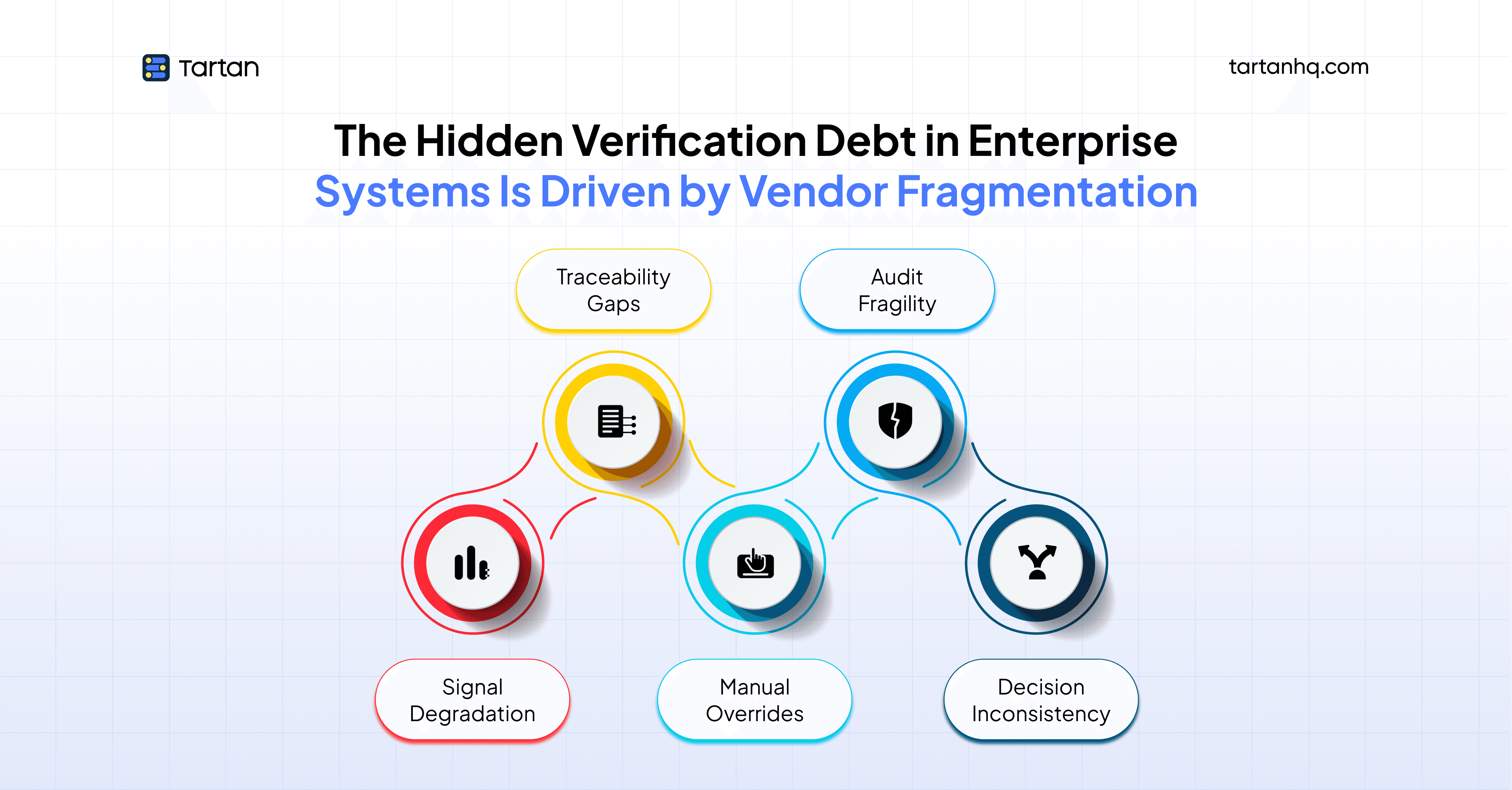 As this progression repeats across products, regions, and years, verification ceases to function as a coherent system. It becomes distributed across vendors, workflows, teams, and time, with no single control layer capable of explaining how trust was established, why a decision was made, or whether it should still be trusted.