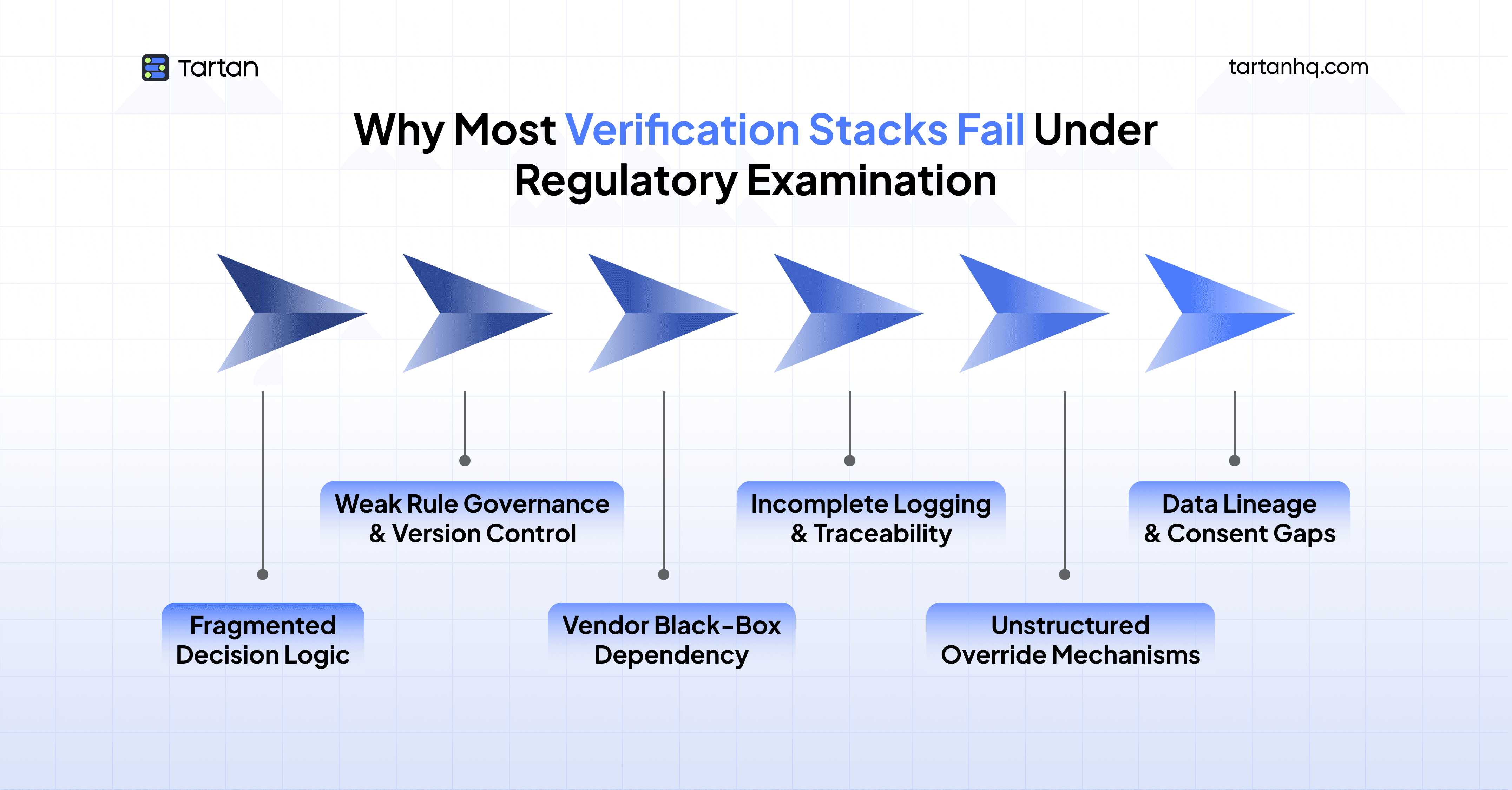 At this stage, many enterprises discover that their verification layer was engineered for execution efficiency rather than regulatory defensibility. Decision logic is dispersed across codebases and vendor systems. Threshold changes lack formal version governance.