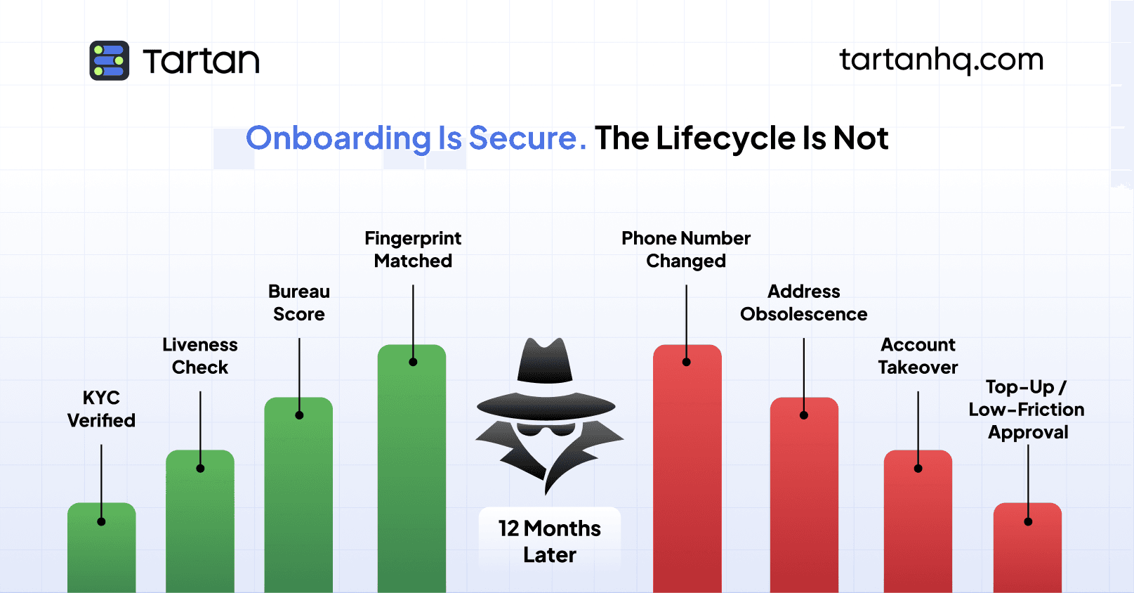 But here's what happened as a result: fraud adapted. Fraudsters aren't fighting strong onboarding stacks anymore. They're going around them.